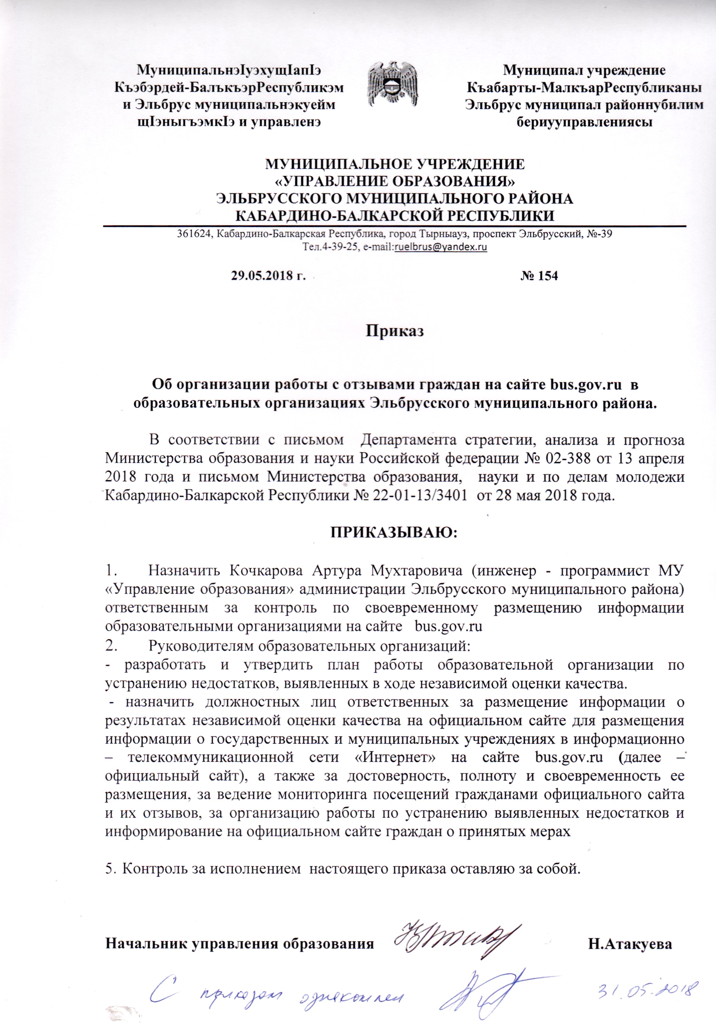 • О выявленных фактах коррупции или нарушения прав и законных интересов обучающихся и воспитанников в образовательных организациях района сообщайте по телефонам "горячей линии": 4‑38‑54, 4‑26‑02 или на электронный адрес Управления: obrelbrus@yandex.ru.