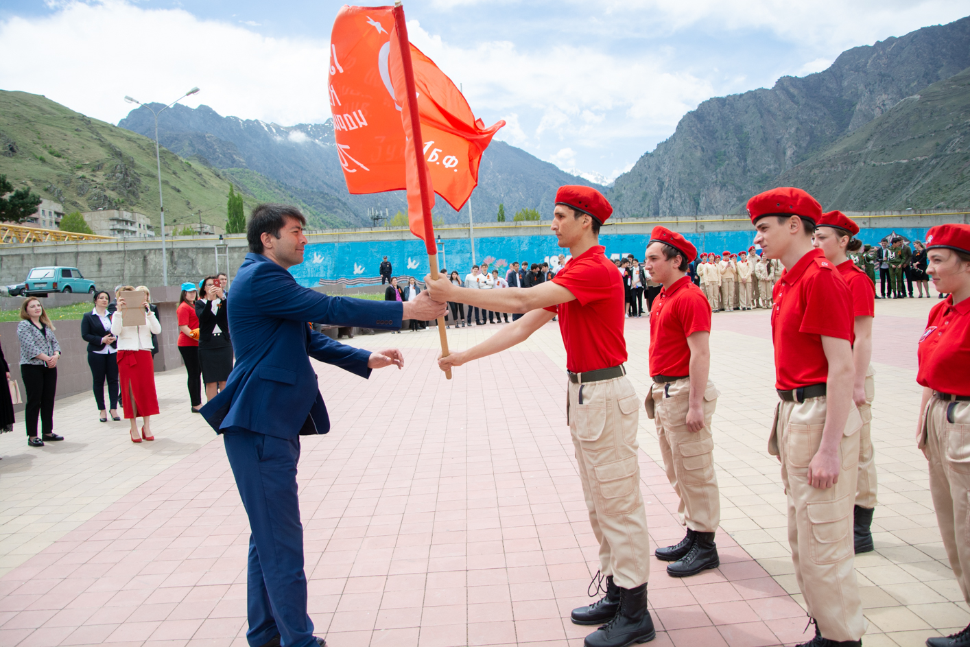 70-метровая Георгиевская лента была пронесена по главной улице г. Тырныауза и торжественно передана волонтерам Чегемского района.