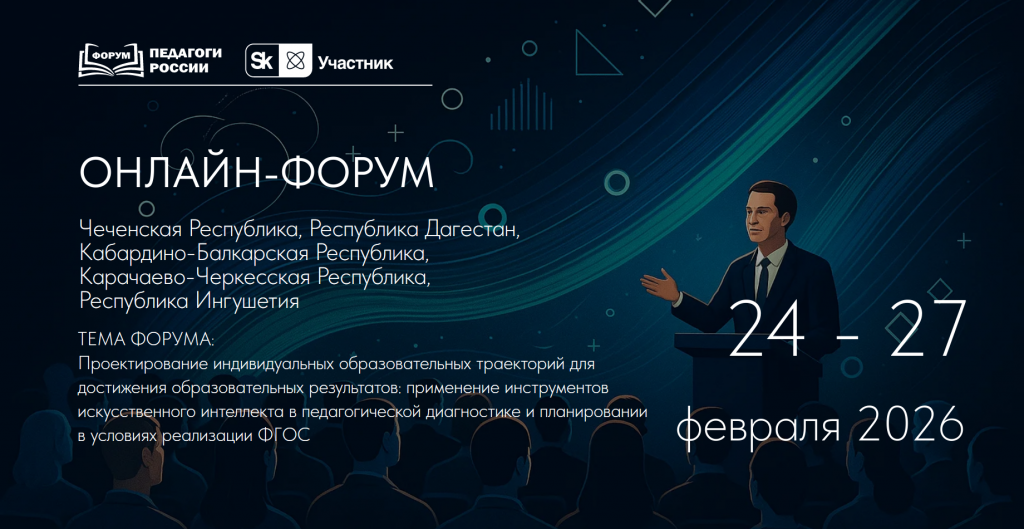 24-27 февраля в регионе пройдет федеральный онлайн-форум «Педагоги России: инновации в образовании» для педагогов дошкольного и общего образования. Тема форума – «Проектирование индивидуальных образовательных траекторий для достижения образовательных результатов: применение инструментов искусственного интеллекта в педагогической диагностике и планировании в условиях адаптивной образовательной среды».